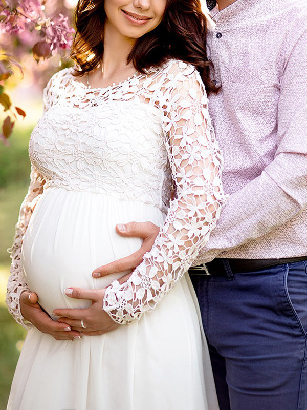 Damen Hochzeitskleid | Schwangerschafts Kleid Mit Spitzenärmeln