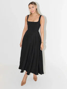 Dieses Damen Kleid für Hochzeitsgäste überzeugt durch seine klare, feminine Linienführung und den klassischen Schnitt. Der gerade Ausschnitt mit breiten Trägern sorgt für einen eleganten Halt, während der weich fallende Midirock eine harmonische Silhouette schafft. Ein vielseitiges Kleid, das sich perfekt für Hochzeiten, festliche Feiern und stilvolle Abendveranstaltungen eignet.